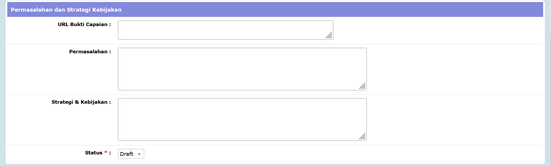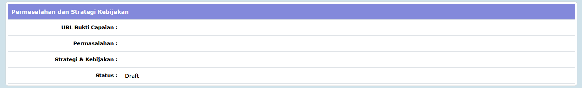 - Kolom Strategi & Kebijakan diisi dengan uraian dari strategi & kebijakan;