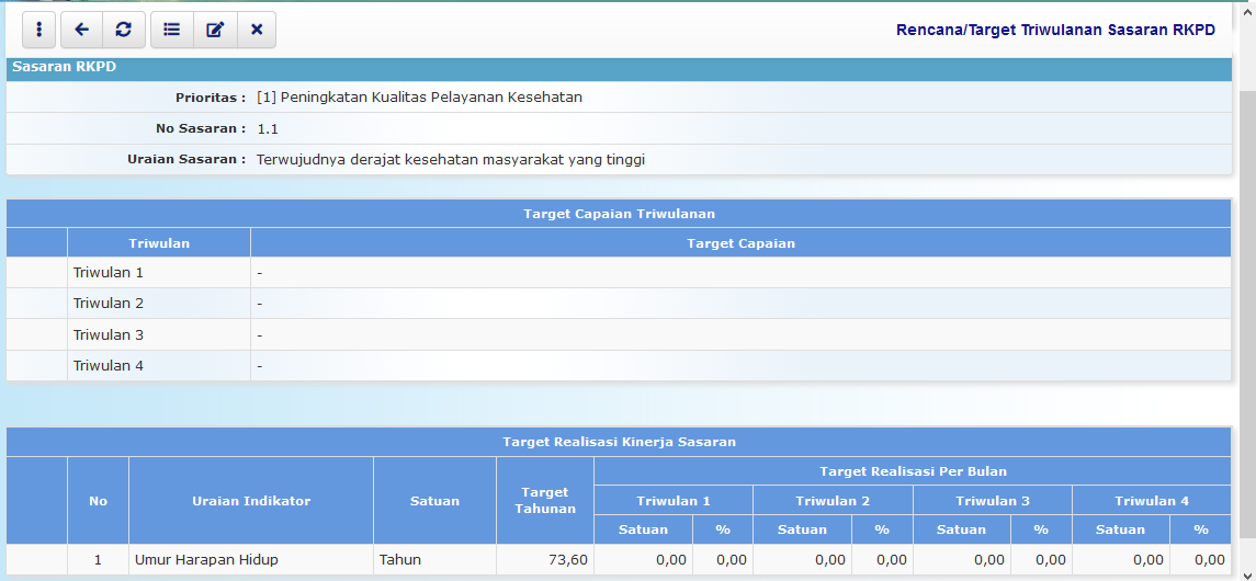 Pilih SAKIP > SAKIP Pemda > Perencanaan > Target Realiasasi > Sasaran, akan tampil sebagai berikut :